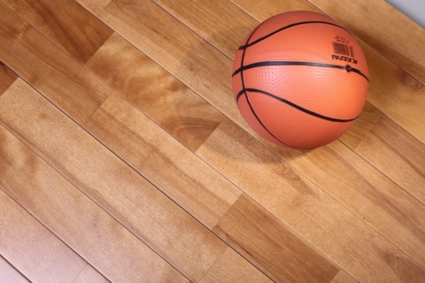 體育木地板有干縮濕脹的特性,安裝地體育木地板時必須根據地板實際的含水率,木材的干縮系數,本地區的平衡含水率合理預留地板條之間的縫隙。