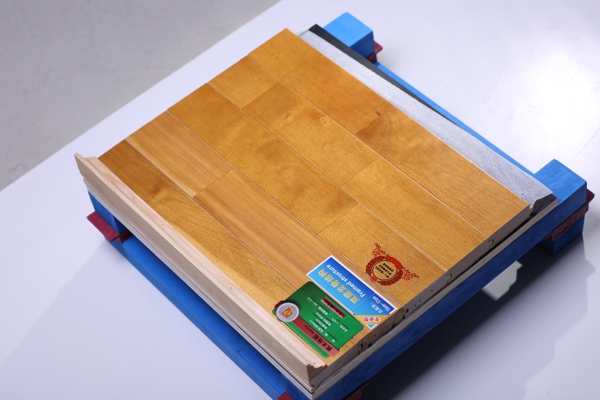 體育館運動木地板的面板層通常都是由純實木制作的,在全部結構底部是彈性減震層,而毛板層、龍骨層基本也都是實木材質的,加上防潮層就算構成完整的體育館場地木地板了。