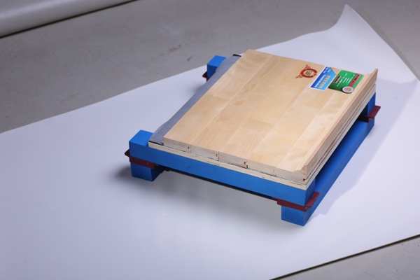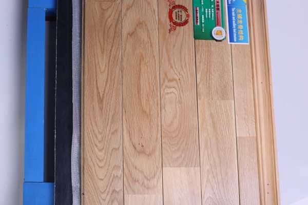 5.面板:“歐氏”面板主要是實木面板,樹種選用較好的硬木,如硬楓木,松木、水曲柳,柞木,楓樺木等等。由于楓木是長纖維樹種,堅韌性好,硬度也適中,且在比賽以及電視轉播中的觀看效果 佳,因此世界上絕大多數體育館的面板均是采用楓木來制作。面板含水率不得超過當地平衡含水率。國外進口的MFMA的楓木面板規格一般有20mm、26mm厚度,寬度有38mm、57mm等等。國產板的尺寸大多數為22mm厚,帶凹槽及凸緣。