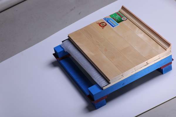 1987 年,Debra A. Stephenson 在 US. Patent 4682459 中指出,地板結構從下至上依次為:基面(混凝土或柏油)、彈性墊塊、剛性層、彈性層、剛性層、木質材料表面 層。